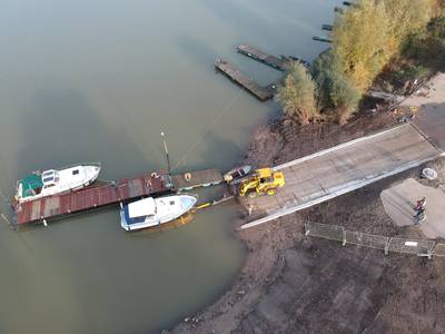 Op 3 november zijn zes boten via de nieuwe hellingbaan op de kant gezet. Het is heel goed gegaan dankzij de hellingploeg.